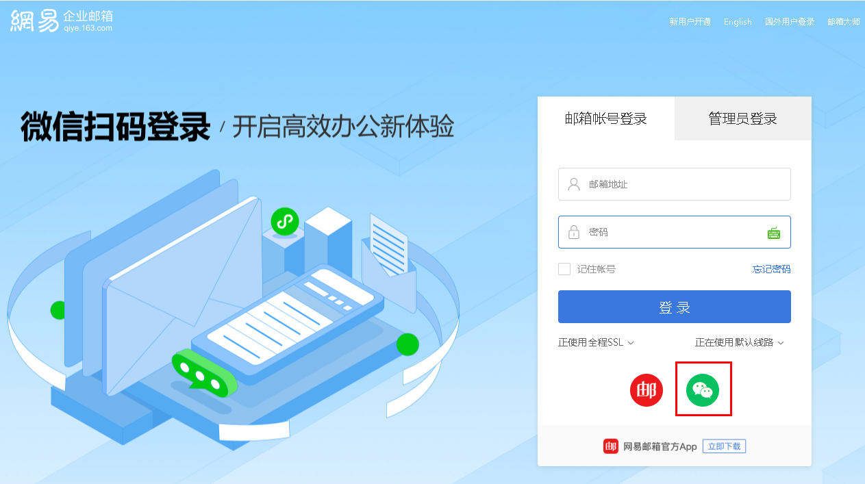 小技巧:密码太复杂记不住,打开https://qiye.163.com,用微信扫码登录。