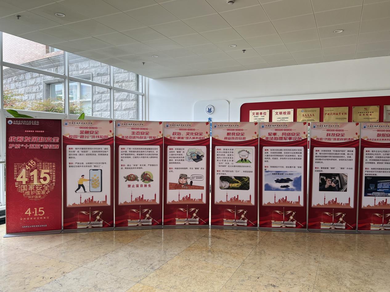 为扩大国家安全教育覆盖面,让国安知识融入校园日常,学院在东海源大厅展出“统筹发展和安全,护航‘十五五’新征程”系列展板。展板以图文结合的直观形式,紧扣“十五五”规划相关部署,系统呈现国家安全重点领域及典型案例警示,深入解读统筹发展与安全的辩证关系。此次展板展览,为校园营造了浓厚的国家安全教育氛围,让国家安全知识抬头可见、触手可及,实现了“润物无声”的教育效果。